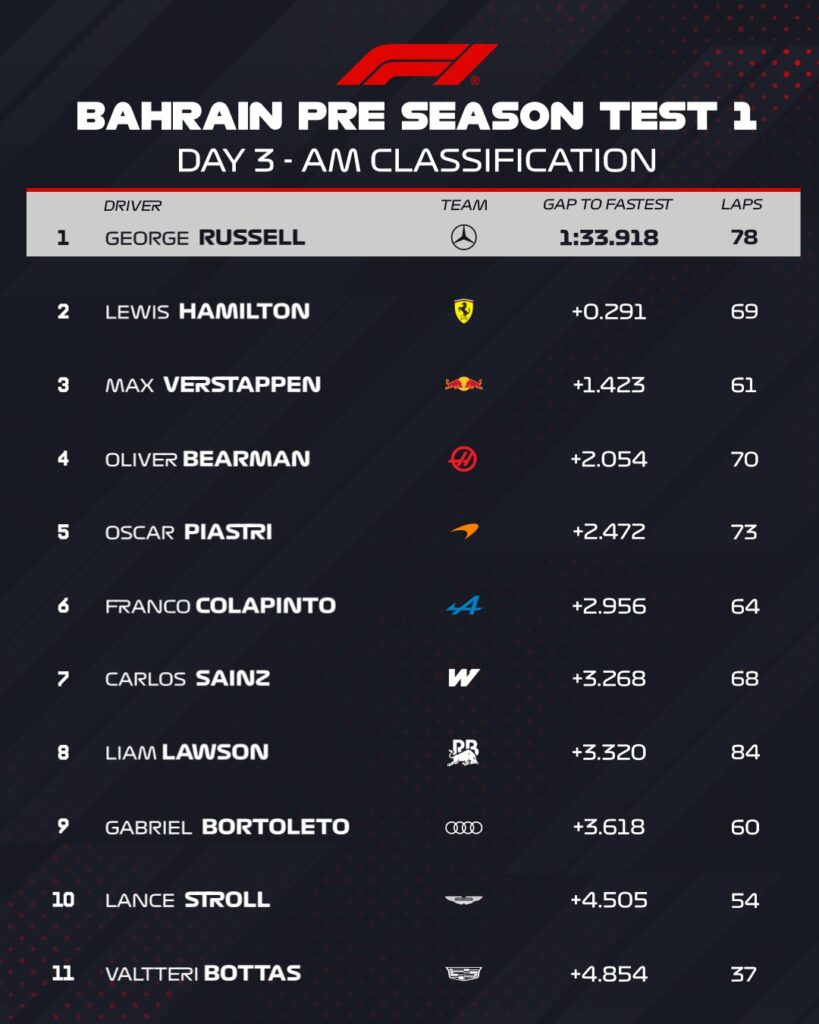 2026 Bahrain F1 Testing | Day 3, Test 1 results