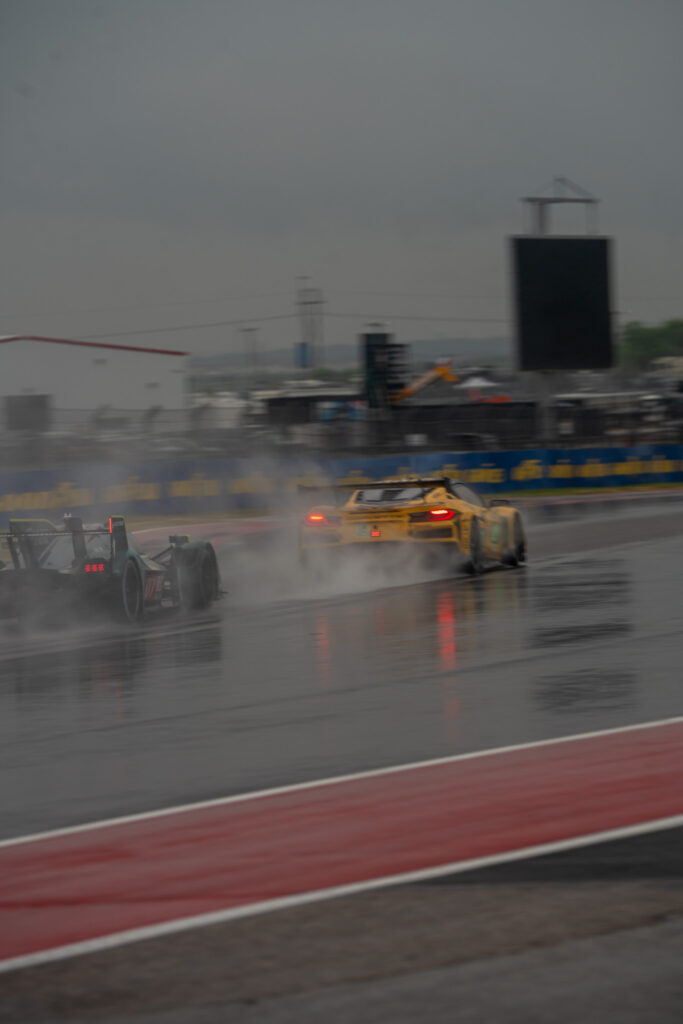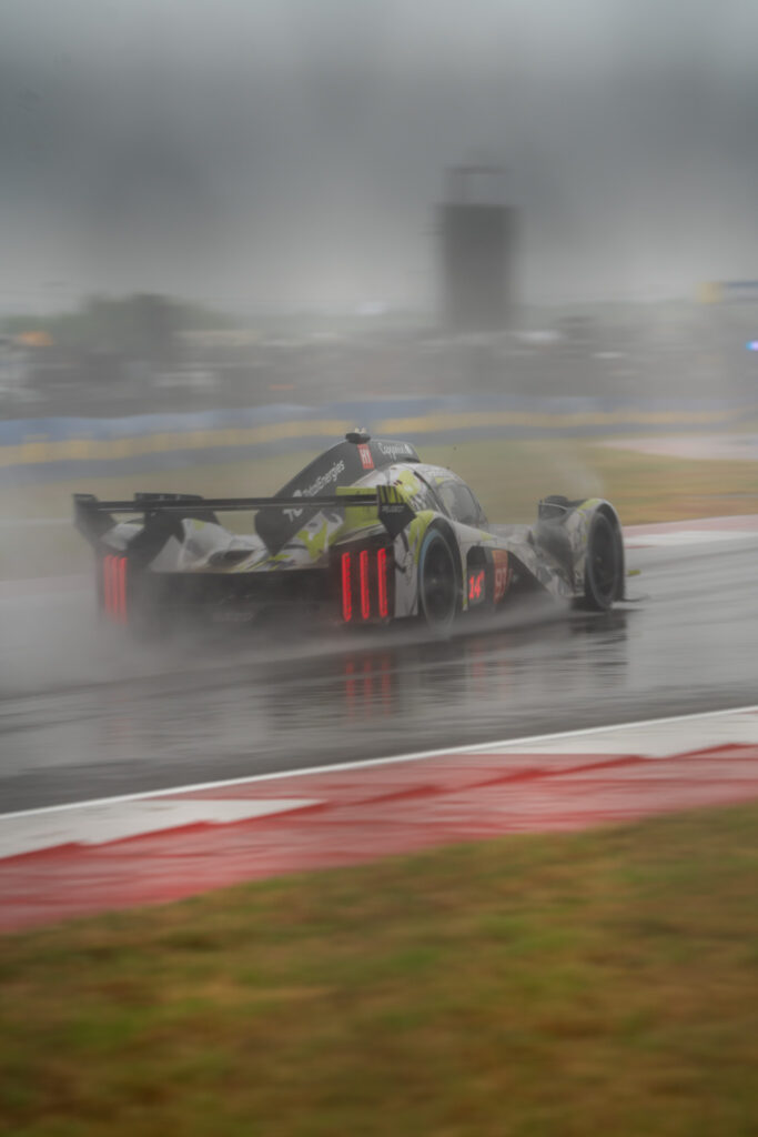 Unseasonable rain in Texas resulted in the early stages of the six-hour race taking place behind the safety car, and following a red flag interruption, the competitive action finally got underway just before one-third distance.